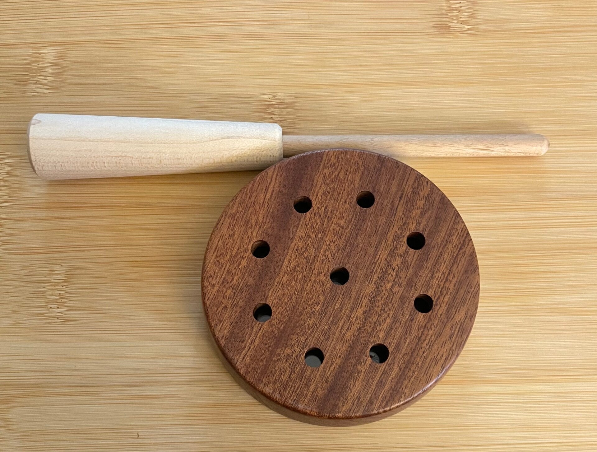 Mahogany pot with slate over glass playing surface. Hickory striker included. Beautiful call Great Sounds great