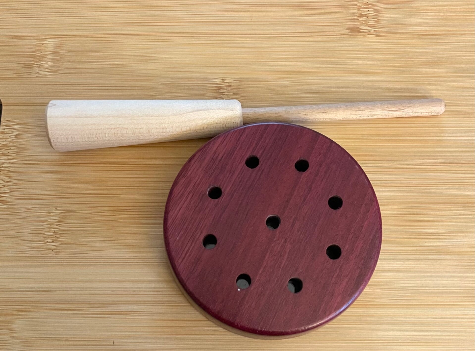 Purple Heart pot with slate over glass playing surface Hickory striker included. Beautiful call